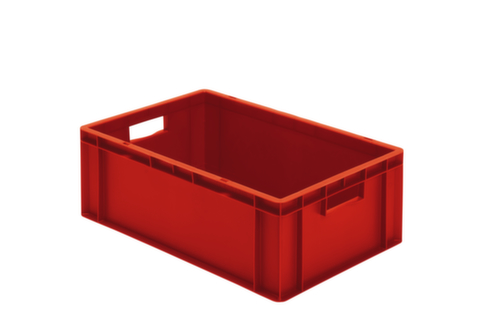 Maßlich auf die Europalette abgestimmt. Aus bruchsicherem Polypropylen in rot. Wände geschlossen, Boden geschlossen. Einfacher Transport durch Tragegriffe. Mehrfach stapelbar. Lebensmittelgeeignet. Für Rollenbahnen geeignet. Temperaturbeständig -20 °C bis +80 °C. Geeignet für verschiedene Stoffe, bitte anfragen.