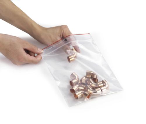 "longDescription": "<h2>Druckverschlussbeutel</h2><ul><li>Durch hohe Materialstärke für schwere und scharfkantige Waren geeignet</li><li>Mit Loch zum Aufhängen</li></ul>",