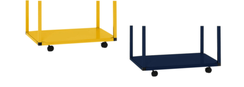 "description": "mit Bodenplatte, 4 Lenkräder, mit Feststeller, in verschiedenen Farben",