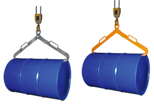 "metaDescription": "Fassklemme - Traglast 0,36 t, für liegende 200 l Metallfässer, verzinkt oder RAL2000",