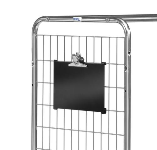 "metaDescription": "fetra Kennzeichnungstafel - f. Kommissionierwagen, Stahl, mattschwarz, HxB 210x330mm",
