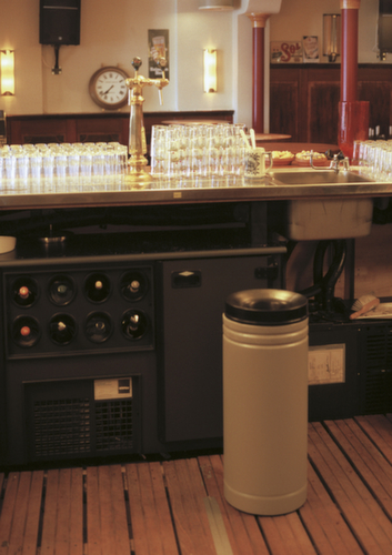 "metaDescription": "Feuerlöschender Papierkorb, 50 l, grau, Deckel schwarz - selbstlöschend, 50l, H 725mm, Bodenaufstellung, Kopfteil schwarz, Korpus Metall grau, Deckel Metall schwarz",