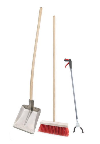 "longDescription": "<h2>Geräteset Außenreinigung</h2><strong>perfekte Grundausstattung zum Reinigen von Außenanlagen</strong><br><br><h3>Bestehend aus:</h3><ul><li>Abfallgreifer für rückenschonendes Aufsammeln von Abfall</li><li>Straßenbesen mit extra hohen Super-Elaston-Borsten</li><li>Randschaufel aus Aluminium</li><li>Stiele aus Esche für Besen und Schaufel</li></ul><br><h3>Anlieferung:</h3><ul><li>Stiele werden lose geliefert</li></ul>",