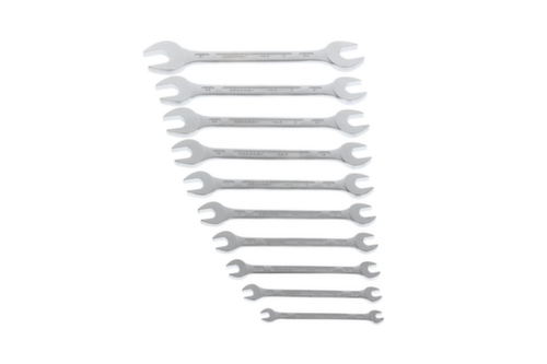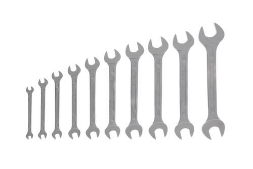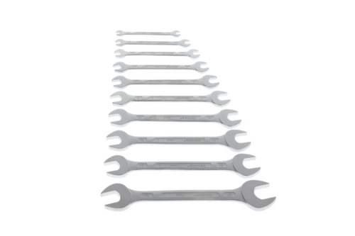 "longDescription": "Gängigste Größen im Set, Ausführung nach DIN 3110, ISO 3318, ISO 1085, ISO 10102, Mit flachen Köpfen, Blendfreie, mattierte Oberfläche, Maul: präzise auf exaktes Nennmaß geschliffen für optimale Kontaktflächen, Sicherer Griff durch schlanken Profilschaft, Überbelastung wird durch Verformung angezeigt, Hochwertige Industriequalität für harte Dauerbeanspruchung, Chrom-Vanadium-Stahl 31CrV3, verchromt<br>",