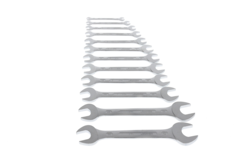 "longDescription": "Gängigste Größen im Set, Ausführung nach DIN 3110, ISO 3318, ISO 1085, ISO 10102, Mit flachen Köpfen, Blendfreie, mattierte Oberfläche, Maul: präzise auf exaktes Nennmaß geschliffen für optimale Kontaktflächen, Sicherer Griff durch schlanken Profilschaft, Überbelastung wird durch Verformung angezeigt, Hochwertige Industriequalität für harte Dauerbeanspruchung, Chrom-Vanadium-Stahl 31CrV3, verchromt<br>",