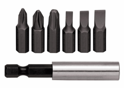"value": "1/4\" Schlitz 4 5 6 mm|1/4\" Kreuzschlitz PH 1 2 3|Bit-Halter 1/4\" 6kt x 1/4\" 6kt, mit Magnet"