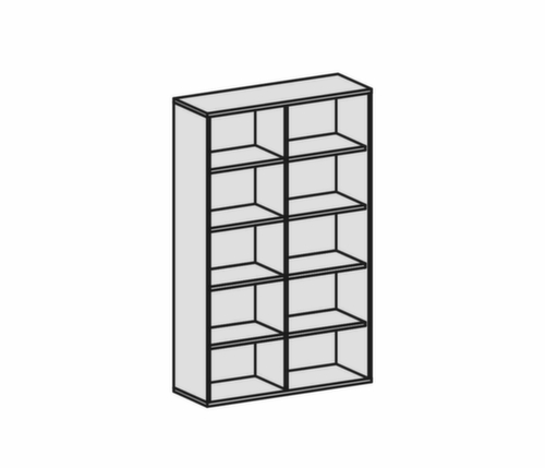 Die wichtigsten Maße des Gera Aktenregals Pro auf einen Blick:Leicht zugänglicher Stauraum für Akten und Arbeitsunterlagen auf 5 Ordnerhöhen. 4 Ebene(n) mit Holzboden nach Ihrem Bedarf im Raster von 32 mm verstellbar. Konstruktion aus Holz mit pflegeleichter Melaminharzbeschichtung. Ebenen in Korpusfarbe.
