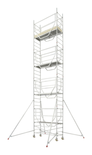 "longDescription": "<h2>Fahrgerüst ADVANCED SAFE-T</h2><strong>dank modularem Aufbau variabel einsetzbar</strong><br><ul><li><strong>Schneller Aufbau</strong> durch praktische Klickverschlüsse an Streben und Diagonalen- <strong>Sicher arbeiten auch im Außenbereich</strong> - Bühne mit rutschhemmendem und wetterfestem Belag</li><li><strong>Bequemer Ein- und Ausstieg</strong> über Durchgangsluke</li><li><strong>Maximale Sicherheit</strong> durch umlaufendes Geländer</li><li><strong>Sicherer Stand</strong> durch Ausleger</li><li><strong>Leicht und robust</strong> - geschweißte Rohrkonstruktion aus Aluminium</li><li>Bühne belastbar bis 200 kg</li></ul><strong>Sie haben die Wahl:</strong><br><ul><li><strong>Mobil einsetzbar auch bei Bodenunebenheiten</strong> - zusammengestellte Module mit 4 höhenverstellbaren Lenkrollen- <strong>Noch mehr Standsicherheit</strong> - ab 9,25 m Reichhöhe mit teleskopierbaren Auslegern mit Bajonett-Verschluss</li></ul>",