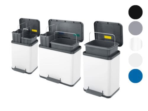"description": "3x9l, HxBxT 430x470x340mm, Innenbehälter Kunststoff, Korpus Stahl weiß, Deckel Kunststoff, Bodenring",