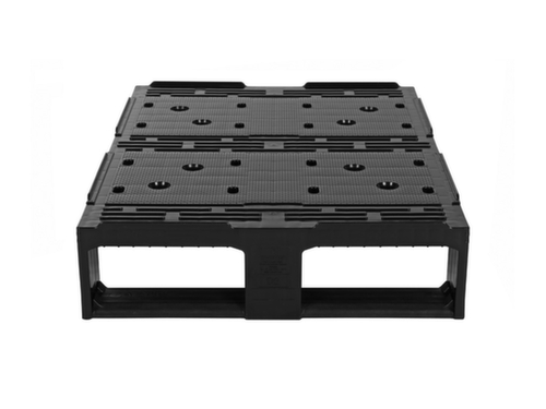 "metaDescription": "Halbformatpalette D2 mit Rand, Polypropylen, Länge x Breite 800 x 600 mm - PP, HxLxB 160x800x600mm, Tragl. stat. 2000kg, Kufen, Oberdeck durchbrochen, Sicherungsrand, schwarz",