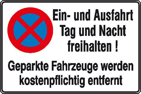 "value": "absolutes Halteverbot/\"Ein- und Ausfahrt Tag und Nacht freihalten! Geparkte Fahrzeuge werden kostenpflichtig abgeschleppt\"",