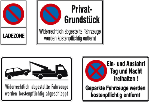 "description": "\"Widerrechtlich abgestellte Fahrzeuge...\", Wandschild, Alu, HxB 250x400mm",