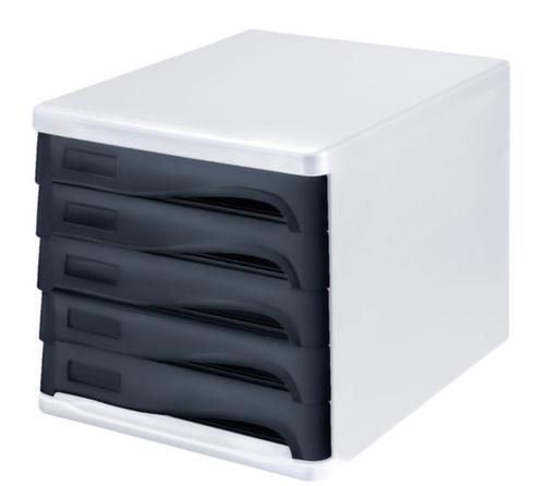 "longDescription": "<h2>Schubladenbox</h2><strong>bringt Farbe ins Büro</strong><br><ul><li><strong>Attraktives Design</strong> - Korpus in weiß und Schubladen farbig</li><li><strong>Viel Platz auf kleinem Raum</strong> - platzsparend stapelbar</li><li><strong>Leichtgängige Schubladen</strong> mit Auszugsperre</li><li><strong>Optimal organisiert</strong> - Schubladen mit Beschriftungsfeld</li><li><strong>Langlebig und kratzfest</strong> - aus Kunststoff</li></ul><br>Schöne Ordnung<br><br>Die Schuladenbox von helit macht ihrem Namen \"the wave\" alle Ehre. Das geschwungene Design der Schubladenfront ist aber nicht nur ein echter Blickfang, sondern sorgt für einen schnellen und leichten Zugriff auf die 5 einzelnen Schübe. In den vielen attraktiven Farben passt die Schubladenbox von helit in jedes Büro und macht Lust auf Ordnung.<br><br>Effektive Ordnung<br><br>Durch das Beschriftungsfeld auf den Schubladenfronten behalten Sie immer den Überblick. Bringen Sie einfach ein Etikett an, welches Ihnen den Inhalt der Schublade anzeigt. So bleibt Ihr Schreibtisch frei und ermöglicht Ihnen strukturiertes und konstruktives Arbeiten. <br>In den 5 Schubladen mit einem Innenmaß von H x B x T 35 x 235 x 315 mm sind Ihre Unterlagen im Format bis DIN A4 schnell untergebracht. Die Schübe sind leichtgängig und tragen bis zu 2,5 kg. Ihre Unterlagen sind ordentlich verstaut und doch jederzeit griffbereit.<br><br>Langlebige Ordnung<br><br>Das robuste Gehäuse der Schubladenbox ist aus stoßfestem Polypropylen. Der hochwertige Kunststoff zeichnet sich durch seine Langlebigkeit aus und ist durch die zusätzlich strukturierte Oberfläche absolut kratzunempfindlich. So werden Sie lange Freude an der Schubladenbox von helit haben.<br>",