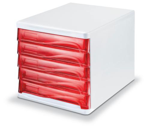 "metaDescription": "helit Farbige Schubladenbox the wave - 5 Schublade(n), HxBxT 250x265x340mm, Kunststoff, weiß, Schubladen rot transparent",