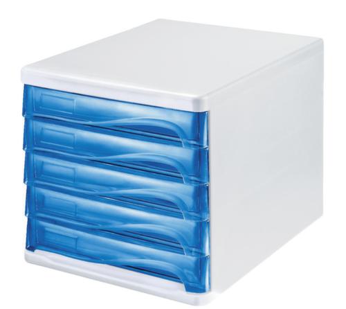 "metaDescription": "helit Farbige Schubladenbox the wave - 5 Schublade(n), HxBxT 250x265x340mm, Kunststoff, weiß, Schubladen blau transparent",