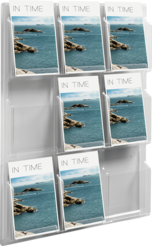 "title": "helit Wandprospekthalter \"the clearly\", 9 Ablagen, Gestell transparent",