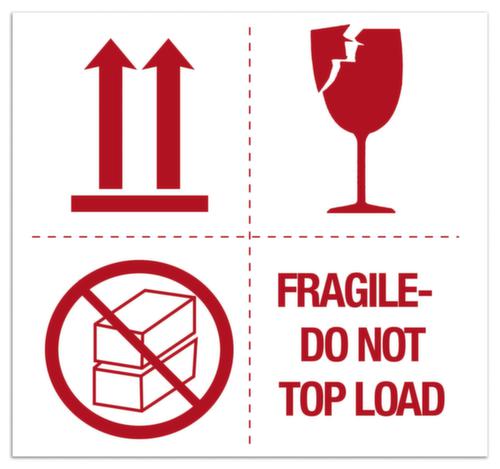 "metaDescription": "Hinweisetiketten - \"Fragile-Do not top load\"+3 Symbole, LxB 50x50mm, M-Cote, weiß/rot",