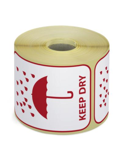 "metaDescription": "Hinweisetiketten - \"Keep dry\"/Schirm, LxB 74x105mm, M-Cote, weiß/rot",