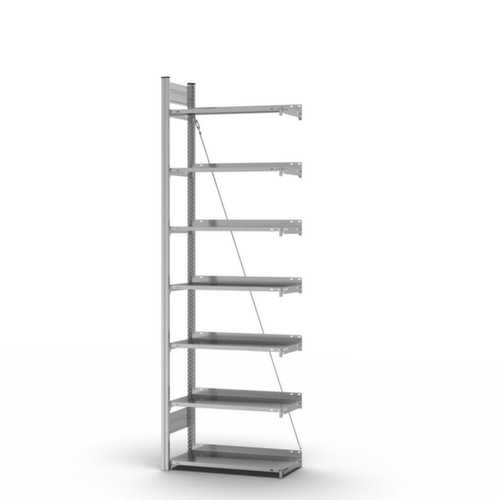 Anbauregal mit 1 Ständerrahmen, Diagonalverstrebungen und Ebenen gem. Angebot