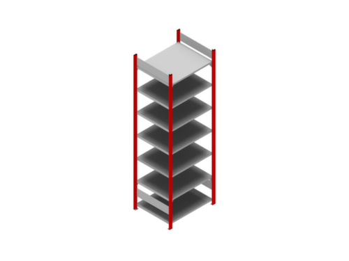 "metaDescription": "hofe Akten-Steckregal Anbaufeld zur beidseitigen Nutzung, 7 Böden, RAL3000 Feuerrot / RAL9006 Weißaluminium - Anbaufeld, HxBxT 2350x1010x635mm, Fachlast 90kg, 7xStahlboden, 6 OH, beidseitig, Ständer RAL3000, Ebenen RAL9006",