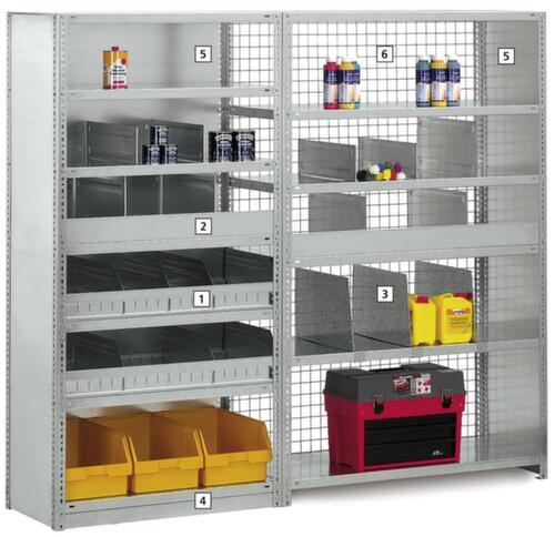 "description": "Grundfeld, HxBxT 3000x1300x800mm, Fachlast 350kg, 7xStahlboden, einseitig, Ständer verzinkt, Ebenen verzinkt",