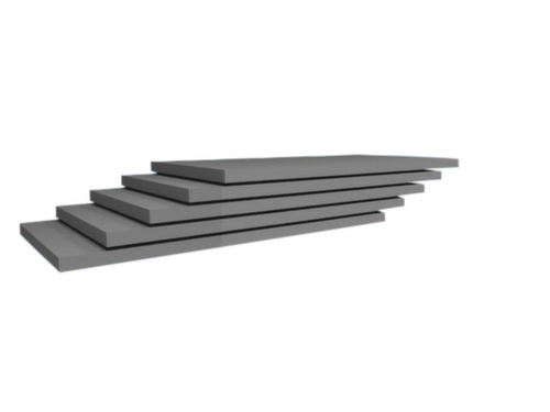 Die wichtigsten Maße des hofe Lagerregal-Fachbodens auf einen Blick:3-fache Sicherheitsabkantung mit 40 mm Höhe und geschlossenen Eckbereichen sorgen für eine hohe Stabilität und Sicherheit gegen Verletzungen. Konstruktion aus Stahl, Ebenen mit korrosionsschützender Zinkbeschichtung.