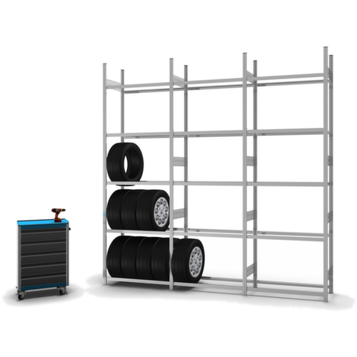Die wichtigsten Maße des hofe Reifenregals auf einen Blick:5 Ebene(n) mit Spezial-Traversenprofilen für eine schonende Reifenlagerung. Fachhöhen je nach Einsatzzweck und Ihrem Bedarf im Raster von 25 mm verstellbar. Nutzung einseitig - zur Aufstellung an der Wand konzipiert. Konstruktion aus Stahl. Ständer mit korrosionsschützender Zinkbeschichtung. Traversen mit korrosionsschützender Zinkbeschichtung.