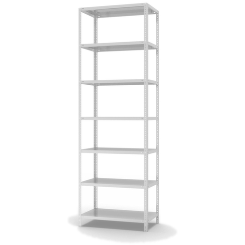 Die wichtigsten Maße des hofe Lagerregals auf einen Blick:7 Ebene(n) mit Stahlboden. 3-fache Sicherheitsabkantung mit 40 mm Höhe und geschlossenen Eckbereichen sorgen für eine hohe Stabilität und Sicherheit gegen Verletzungen. Fachhöhen je nach Einsatzzweck und Ihrem Bedarf im Raster von 25 mm verstellbar. Nutzung einseitig - zur Aufstellung an der Wand konzipiert. Konstruktion aus Stahl, Ständer verzinkt mit Kunststoffbeschichtung in RAL7035 Lichtgrau, Ebenen verzinkt mit Kunststoffbeschichtung in RAL7035 Lichtgrau.
