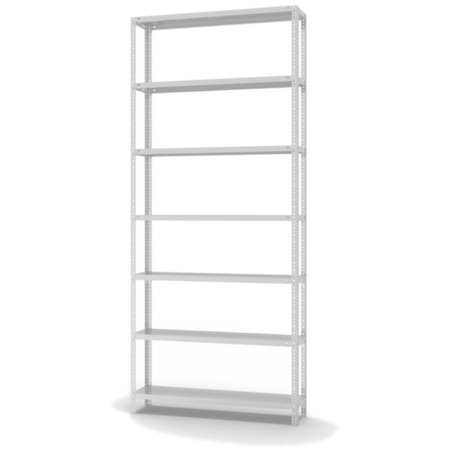 Die wichtigsten Maße des hofe Lagerregals auf einen Blick:7 Ebene(n) mit Stahlboden. 3-fache Sicherheitsabkantung mit 40 mm Höhe und geschlossenen Eckbereichen sorgen für eine hohe Stabilität und Sicherheit gegen Verletzungen. Fachhöhen je nach Einsatzzweck und Ihrem Bedarf im Raster von 25 mm verstellbar. Nutzung einseitig - zur Aufstellung an der Wand konzipiert. Konstruktion aus Stahl, Ständer verzinkt mit Kunststoffbeschichtung in RAL7035 Lichtgrau, Ebenen verzinkt mit Kunststoffbeschichtung in RAL7035 Lichtgrau.