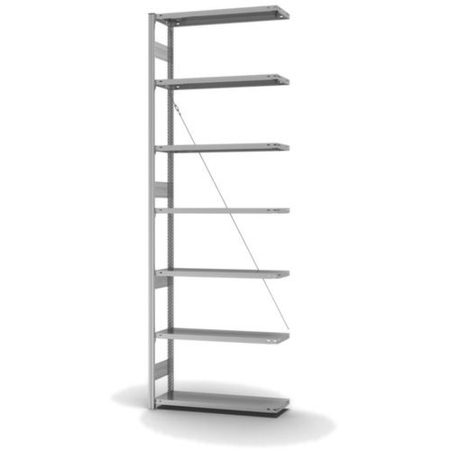 Anbauregal mit 1 Ständerrahmen, Diagonalverstrebungen und Ebenen gem. Angebot