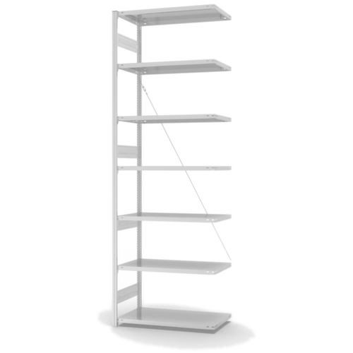 Anbauregal mit 1 Ständerrahmen, Diagonalverstrebungen und Ebenen gem. Angebot