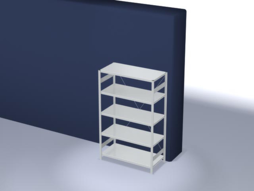 Die wichtigsten Maße des hofe Lagerregals auf einen Blick:5 Ebene(n) mit Stahlboden. 3-fache Sicherheitsabkantung mit 40 mm Höhe und geschlossenen Eckbereichen sorgen für eine hohe Stabilität und Sicherheit gegen Verletzungen. Fachhöhen je nach Einsatzzweck und Ihrem Bedarf im Raster von 25 mm verstellbar. Aufstellwinkel gerade. Nutzung einseitig - zur Aufstellung an der Wand konzipiert. Hohe Stabilität in Längsrichtung durch Diagonalverstrebungen. Durch gesickte Tiefen-Verbindungsblechen und Stahl-Fußplatten ist das Regal besonders standfest. Obere Profilabdeckkappen sorgen für einen sauberen Abschluss. Konstruktion aus Stahl, Ständer verzinkt mit Kunststoffbeschichtung in RAL7035 Lichtgrau, Ebenen verzinkt mit Kunststoffbeschichtung in RAL7035 Lichtgrau.