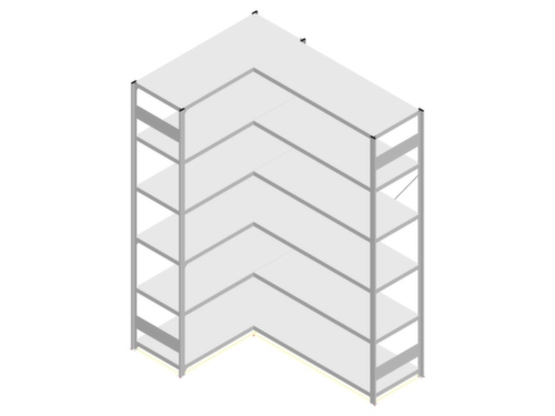 Die wichtigsten Maße des hofe Lagerregals auf einen Blick:6 Ebene(n) mit Stahlboden. 3-fache Sicherheitsabkantung mit 40 mm Höhe und geschlossenen Eckbereichen sorgen für eine hohe Stabilität und Sicherheit gegen Verletzungen. Fachhöhen je nach Einsatzzweck und Ihrem Bedarf im Raster von 25 mm verstellbar. Aufstellwinkel links und rechts. Nutzung einseitig - zur Aufstellung an der Wand konzipiert. Hohe Stabilität in Längsrichtung durch Diagonalverstrebungen. Durch gesickte Tiefen-Verbindungsblechen und Stahl-Fußplatten ist das Regal besonders standfest. Obere Profilabdeckkappen sorgen für einen sauberen Abschluss. Konstruktion aus Stahl, Ständer verzinkt mit Kunststoffbeschichtung in RAL7035 Lichtgrau, Ebenen verzinkt mit Kunststoffbeschichtung in RAL7035 Lichtgrau.