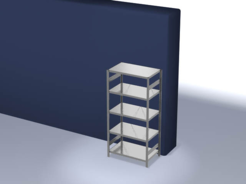 Die wichtigsten Maße des hofe Lagerregals auf einen Blick:5 Ebene(n) mit Stahlboden. Fachhöhen je nach Einsatzzweck und Ihrem Bedarf im Raster von 25 mm verstellbar. Aufstellwinkel gerade. Nutzung beidseitig - flexible Aufstellung frei im Raum möglich. Hohe Stabilität durch Aussteifungstraversen. Durch gesickte Tiefen-Verbindungsblechen und Stahl-Fußplatten ist das Regal besonders standfest. Obere Profilabdeckkappen sorgen für einen sauberen Abschluss. Konstruktion aus Stahl, Ständer mit korrosionsschützender Zinkbeschichtung, Ebenen mit korrosionsschützender Zinkbeschichtung.