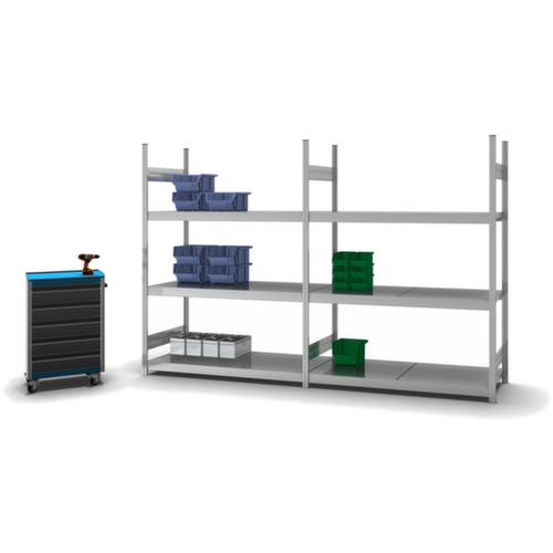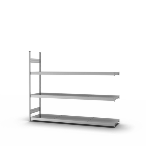 "metaDescription": "hofe Weitspannregal mit Stahlböden - Anbaufeld, HxBxT 2000x1520x535mm, Fachl. 350kg, 3xStahlboden, beidseitig, Ständer verzinkt, Ebenen verzinkt",