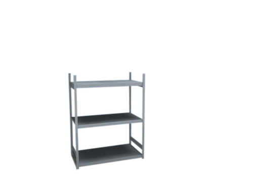 Die wichtigsten Maße des hofe Weitspannregals auf einen Blick:3 Ebene(n) mit Stahlboden. Fachhöhen je nach Einsatzzweck und Ihrem Bedarf im Raster von 25 mm verstellbar. Nutzung beidseitig - flexible Aufstellung frei im Raum möglich. Durch gesickte Tiefen-Verbindungsblechen und Stahl-Fußplatten ist das Regal besonders standfest. Obere Profilabdeckkappen sorgen für einen sauberen Abschluss. Konstruktion aus Stahl, Ständer mit korrosionsschützender Zinkbeschichtung, Ebenen mit korrosionsschützender Zinkbeschichtung,
