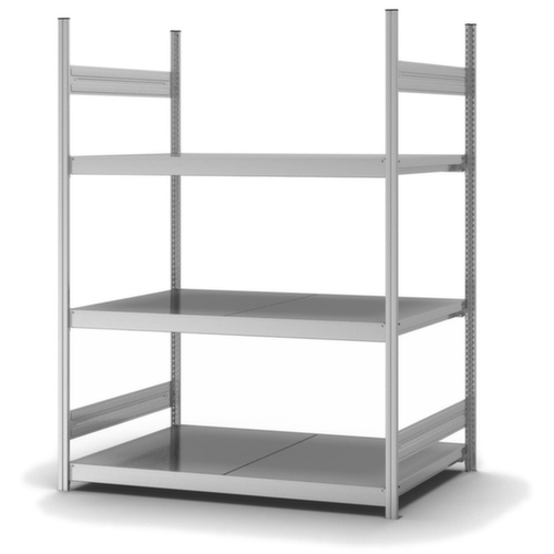 "metaDescription": "hofe Weitspannregal mit Stahlböden - Anbaufeld, HxBxT 2000x2270x835mm, Fachl. 350kg, 3xStahlboden, beidseitig, Ständer verzinkt, Ebenen verzinkt",