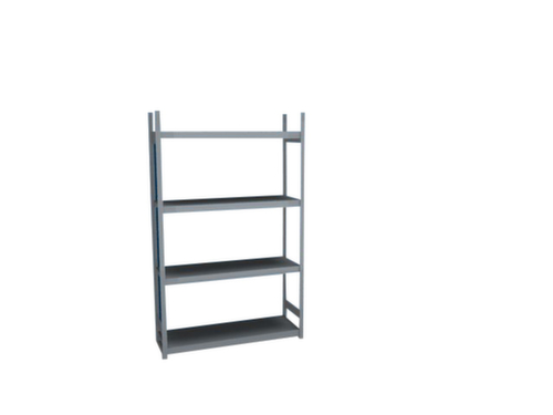 Die wichtigsten Maße des hofe Weitspannregals auf einen Blick:4 Ebene(n) mit Stahlboden. Fachhöhen je nach Einsatzzweck und Ihrem Bedarf im Raster von 25 mm verstellbar. Nutzung beidseitig - flexible Aufstellung frei im Raum möglich. Durch gesickte Tiefen-Verbindungsblechen und Stahl-Fußplatten ist das Regal besonders standfest. Obere Profilabdeckkappen sorgen für einen sauberen Abschluss. Konstruktion aus Stahl, Ständer mit korrosionsschützender Zinkbeschichtung, Ebenen mit korrosionsschützender Zinkbeschichtung,