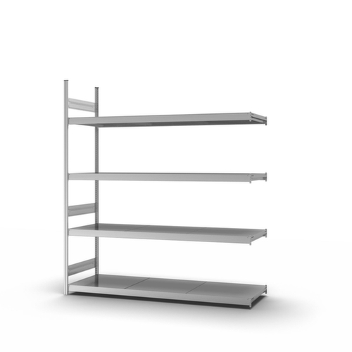 "metaDescription": "hofe Weitspannregal mit Stahlböden - Anbaufeld, HxBxT 2500x2520x635mm, Fachl. 350kg, 4xStahlboden, beidseitig, Ständer verzinkt, Ebenen verzinkt",