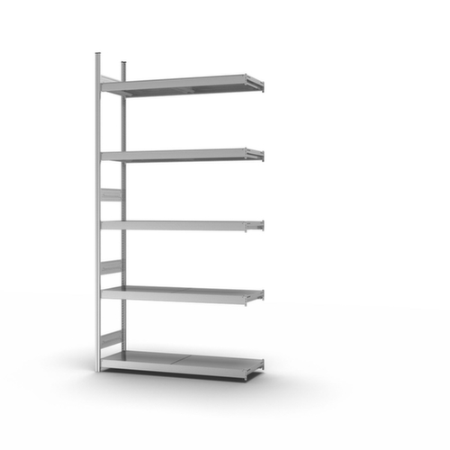 "metaDescription": "hofe Weitspannregal mit Stahlböden - Anbaufeld, HxBxT 3000x2020x435mm, Fachl. 350kg, 5xStahlboden, beidseitig, Ständer verzinkt, Ebenen verzinkt",