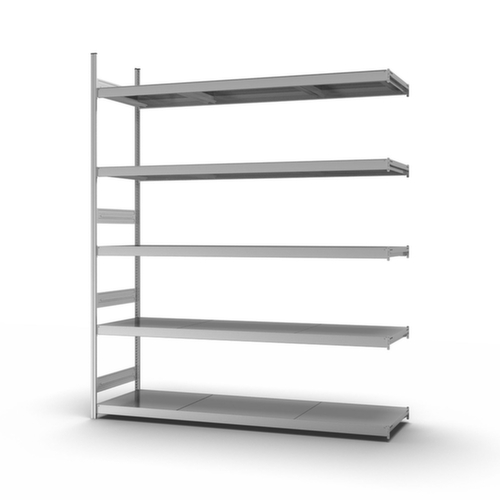 "metaDescription": "hofe Weitspannregal mit Stahlböden - Anbaufeld, HxBxT 3000x1520x635mm, Fachl. 350kg, 5xStahlboden, beidseitig, Ständer verzinkt, Ebenen verzinkt",