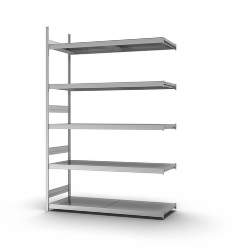 "metaDescription": "hofe Weitspannregal mit Stahlböden - Anbaufeld, HxBxT 3000x2270x635mm, Fachl. 350kg, 5xStahlboden, beidseitig, Ständer verzinkt, Ebenen verzinkt",