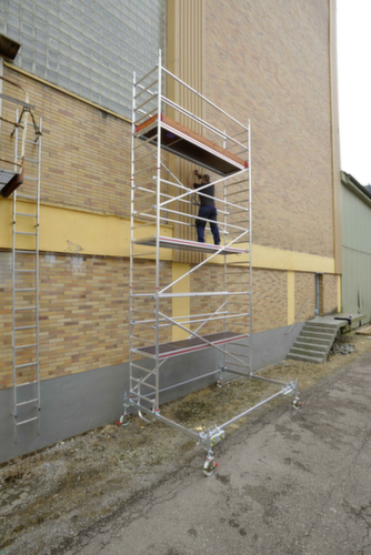 wetterfeste, rutschsichere Bühne, HYMER-Lifter zum Ein- und Aushängen von Diagonalen und Verstrebungen