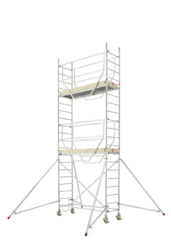 "longDescription": "<h2>Fahrgerüst ADVANCED SAFE-T</h2><strong>dank modularem Aufbau variabel einsetzbar</strong><br><ul><li><strong>Schneller Aufbau</strong> durch praktische Klickverschlüsse an Streben und Diagonalen- <strong>Sicher arbeiten auch im Außenbereich</strong> - Bühne mit rutschhemmendem und wetterfestem Belag</li><li><strong>Bequemer Ein- und Ausstieg</strong> über Durchgangsluke</li><li><strong>Maximale Sicherheit</strong> durch umlaufendes Geländer</li><li><strong>Sicherer Stand</strong> durch Ausleger</li><li><strong>Leicht und robust</strong> - geschweißte Rohrkonstruktion aus Aluminium</li><li>Bühne belastbar bis 200 kg</li></ul><strong>Sie haben die Wahl:</strong><br><ul><li><strong>Mobil einsetzbar auch bei Bodenunebenheiten</strong> - zusammengestellte Module mit 4 höhenverstellbaren Lenkrollen- <strong>Noch mehr Standsicherheit</strong> - ab 9,25 m Reichhöhe mit teleskopierbaren Auslegern mit Bajonett-Verschluss</li></ul>",