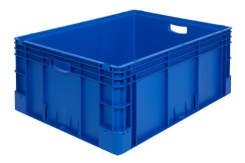 Maßlich auf die Europalette abgestimmt. Aus bruchsicherem Polypropylen in blau. Wände geschlossen, Boden geschlossen. Boden mit Verstärkung durch Verstärkungsrippen. Einfacher Transport durch Tragegriffe. Mit Etikettenhalter zur individuellen und klaren Beschriftung. Einfach zu stapeln mit Stapelrand sicher Mehrfach stapelbar. Lebensmittelgeeignet. Für Rollenbahnen geeignet. Temperaturbeständig -40 °C bis +90 °C. Geeignet für verschiedene Stoffe, bitte anfragen.
