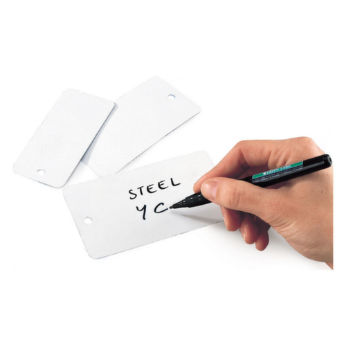 "longDescription": "<h2>Industrieetiketten</h2><h3>Flexibel und ideal für die Lagerung im Freien!</h3><ul><li>Mit Permanentmarker beschreibbar</li><li><strong>2 Qualitäten erhältlich: Metall</strong> (lackiert, faltbar & resistent gegen hohe Temperaturen, <br><strong>PEHD</strong> (resistent gegen niedrige Temperaturen, Chemikalien & Fette)</li><li>Viele Größen und Varianten zur Wahl</li></ul>Unsere Industrieetiketten haben abgerundete Ecken und sind <strong>mit Permanentmarker wisch- und wasserfest beschreibbar</strong>. Mittels Metalldraht können sie dank einem vorgestanzten Loch mit einem Durchmesser von 5mm (außer Bestell-Nr. 286207) an nahezu jedem Produkt befestigt werden. Dadurch eignen sich die flexiblen Industrieetiketten <strong>optimal zur Kennzeichnung und Beschriftung Ihrer Produkte und Kleinteile</strong>, auch im Außenbereich.<br><br>Sie haben die Wahl zwischen Industrieetiketten aus Metall und HDPE. Die Etiketten aus Metall sind weiß lackiert, faltbar und resistent gegenüber hohen Temperaturen. Die HDPE-Etiketten sind resistent gegenüber niedrigen Temperaturen, Chemikalien und Fetten und eignen sich daher optimal für den Chemiesektor. Sie erhalten die Industrieetiketten aus HDPE in fünf unterschiedlichen Farben und können Ihre Produkte somit farblich sortiert kennzeichnen. Speziell für Umreifungsbänder bieten wir Ihnen die gelben HDPE-Etiketten auch mit zwei Perforationen für die praktische Durchführung des Bandes an (Bestell-Nr. 286207). Alternativ können Sie die anderen Industrietiketten mit unserer Etiketten-Befestigung an Umreifungsbändern, Gittern und Säcken fixieren.<br><br><strong>Weitere Details:</strong><ul><li>Alle Industrieetiketten verfügen über ein vorgestanztes Loch (Ø 5 mm) zur Befestigung (außer Bestell-Nr. 286207: zwei Perforationen zur Befestigung von Umreifungsband (L 35 x B 5 mm))</li><li>Die Lieferung erfolgt ohne Metalldraht (außer Bestell-Nr. 286185, 286186, 286190: Lieferung inkl. befestigtem Metalldraht mit Plastikummantelung (L 25 mm))</li><br>",