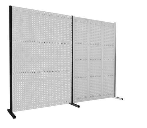 "longDescription": "<h2>Loch-/Schlitzplatten-Trennwand</h2><strong>die flexible Verbindung zwischen Arbeitsplätzen</strong><br><br>Schlagen Sie zwei Fliegen mit einer Klappe! Diese praktische Systemtrennwand ist Raumteiler und Aufbewahrungsort in einem. Die Wand ist aber auch als platzsparende Ecklösung einsetzbar.<br><br>Jede Systemtrennwand ist sowohl mit Lochplatten als auch mit Schlitzplatten ausgestattet. Beide Arten von Platten sind dazu ausgelegt, um Kästen für Kleinteile, Werkzeughalten und vieles mehr aufzunehmen. Dadurch schaffen Sie noch mehr Ordnung am Arbeitsplatz und das Suchen nach Werkzeug hat ein Ende.<br><br>Erhältlich ist die Trennwand in verschiedenen Größen und in den Farben lichtgrau und enzianblau. <br><br>Bei uns erhalten Sie auch eine Menge passendes Zubehör wie zum Beispiel Werkzeughalter, Ablageböden, Magnete und Kästen. Bestellen Sie das passende Zubehör am besten direkt mit gestalten Sie sich Ihre individuelle Trennwand! Damit nutzen Sie die Systemwand optimal aus und verschenken keinen Platz. <br><ul><li><strong>Individuell kombinierbar</strong> - als raumteilende Arbeitswand oder als raumsparende Ecklösung</li><li><strong>Robust und kratzfest</strong> - aus Stahl mit Pulverbeschichtung</li><li><strong>Einfache Montage</strong> - in Verbindung mit Querverbindern mit aufgesetzten Muttern einfach zu verschrauben</li></ul>",