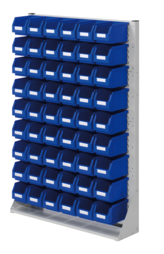 Nutzung einseitig - zur Aufstellung an der Wand konzipiert. Rückwand mit Schlitzplatten für waagerechtes ein- und aushängen der Kästen. Konstruktion aus Stahl. Ständer mit strapazierfähiger Kunststoffbeschichtung in RAL7035 Lichtgrau.
