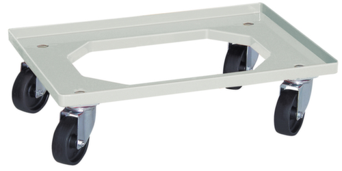 Ideal für Euronormbehälter geeignet. Plattform offen. Gestell in natur. ABSkonstruktion. Leicht zu manövrieren und verfahren durch 4 Lenkrollen. Rad Ø 100 mm. Mit abriebfester und wartungsfreier Kunststoff-Bereifung auf Kunststoff-Felge. Naben mit stoßunempfindlichem und korrosionsbeständigem Gleitlager.