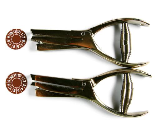 "description": "für Prüfplaketten, Kerbform als Kreis oder Dreieck, Maultiefe 50 mm",